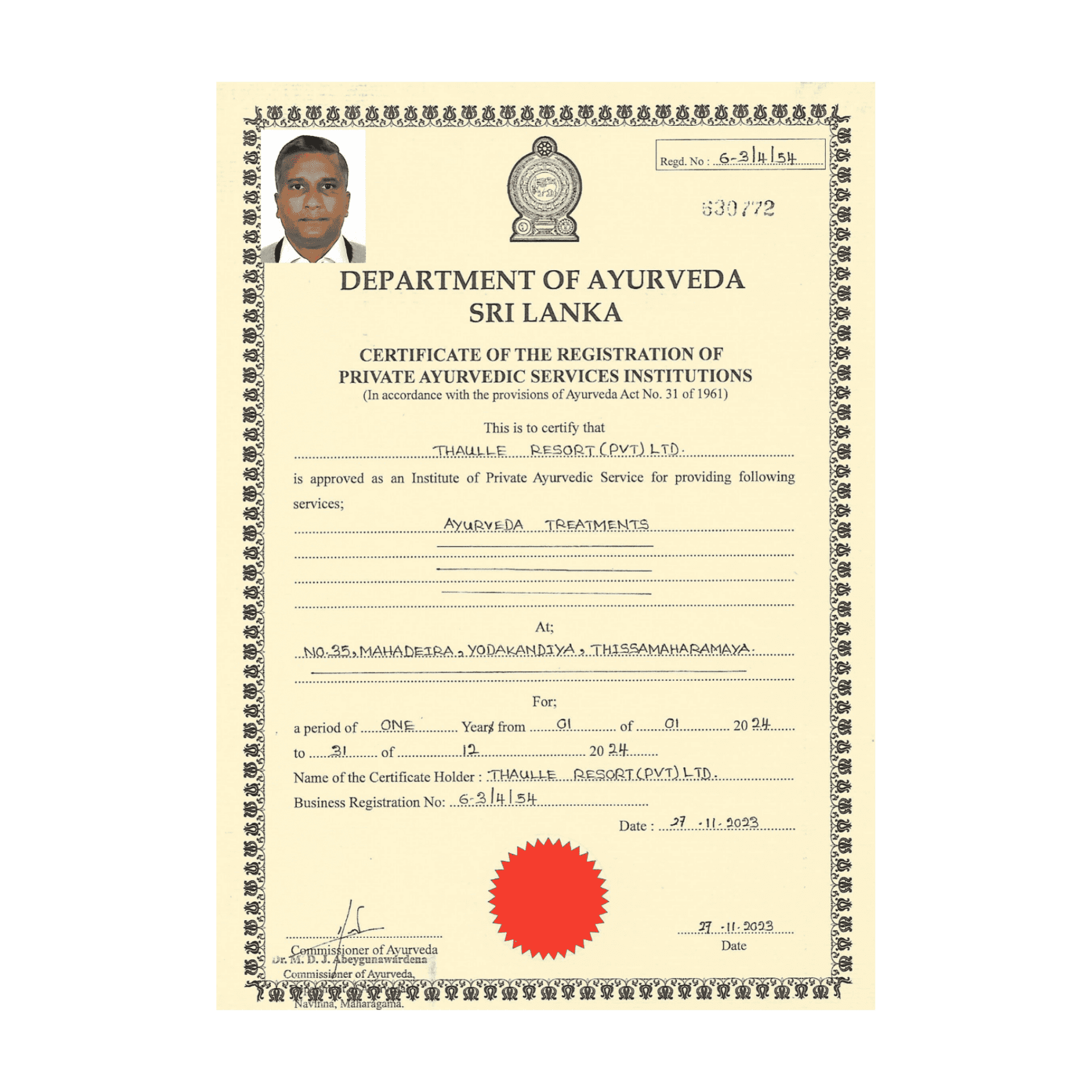 Certified by the Sri Lanka Department of Ayurveda. Official government approval | Regulated medical supervision | Clinical standard — beyond spa-level treatments